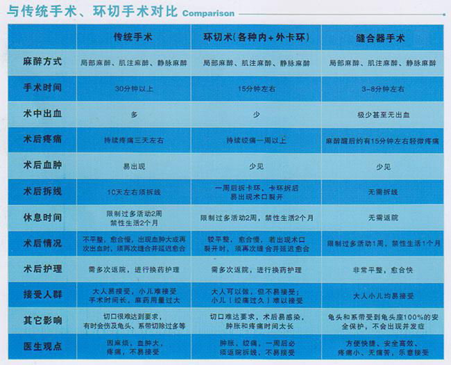 環(huán)切吻合鉗和其它包皮套扎器對比