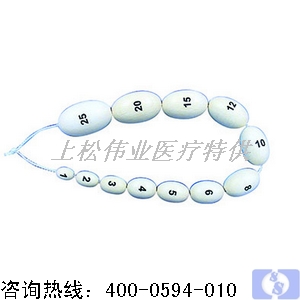 睪丸體積測量器由12粒體積不同狀如睪丸的橢圓形硬物(睪丸測量子)組成,依次標(biāo)注為l、2、