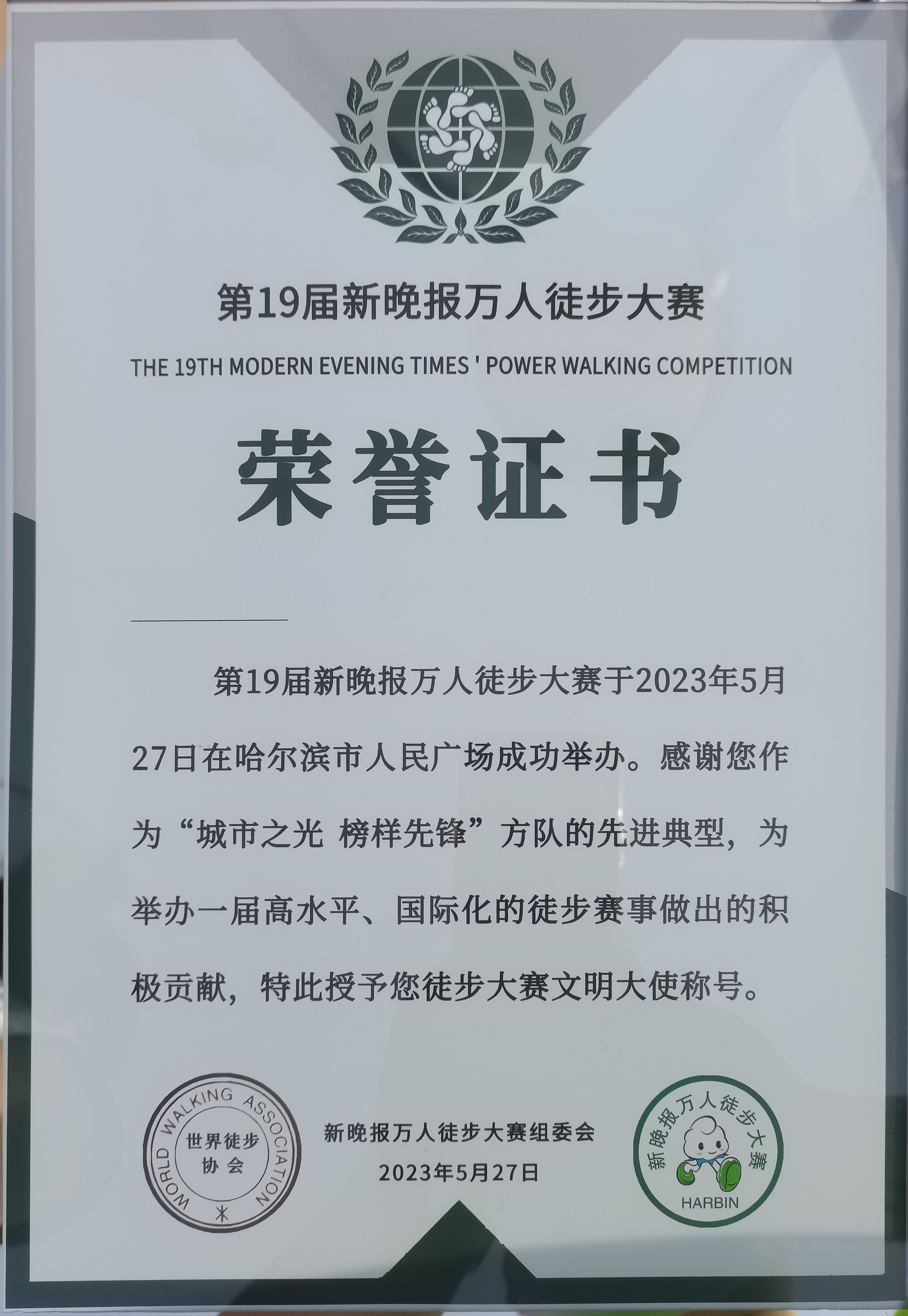 我公司陳國松總經(jīng)理參與此次活動并獲得“徒步大賽文明大使”稱號