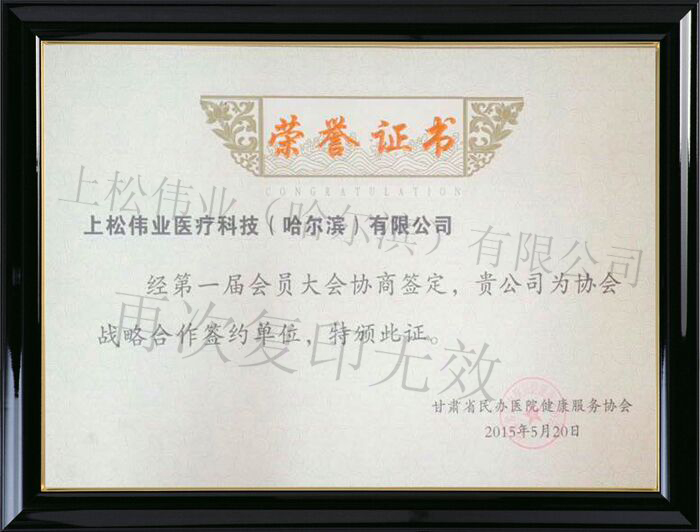 被黑龍江省民營醫(yī)療健康服務(wù)協(xié)會授予“戰(zhàn)略合作單位”稱號
