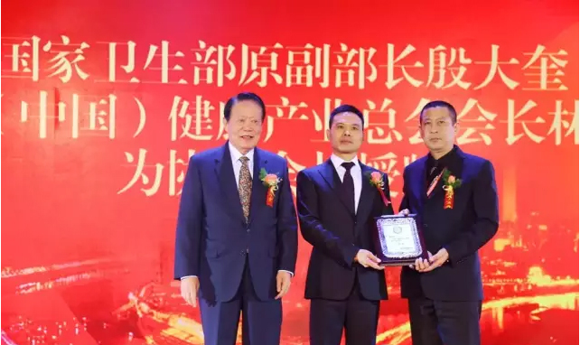 原國(guó)家衛(wèi)生部副部長(zhǎng)殷大奎先生、莆田(中國(guó))健康產(chǎn)業(yè)總會(huì)林志忠總會(huì)長(zhǎng)為協(xié)會(huì)新當(dāng)選詹金星會(huì)長(zhǎng)授牌。