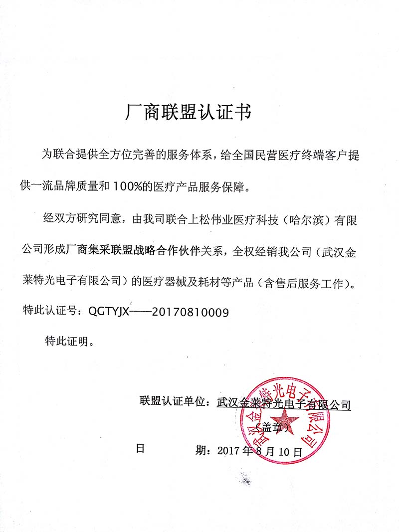 武漢金萊特光電子有限公司授權(quán)