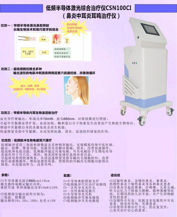低頻半導(dǎo)體激光綜合治療儀CSN100CI(鼻炎中耳炎耳鳴治療儀)