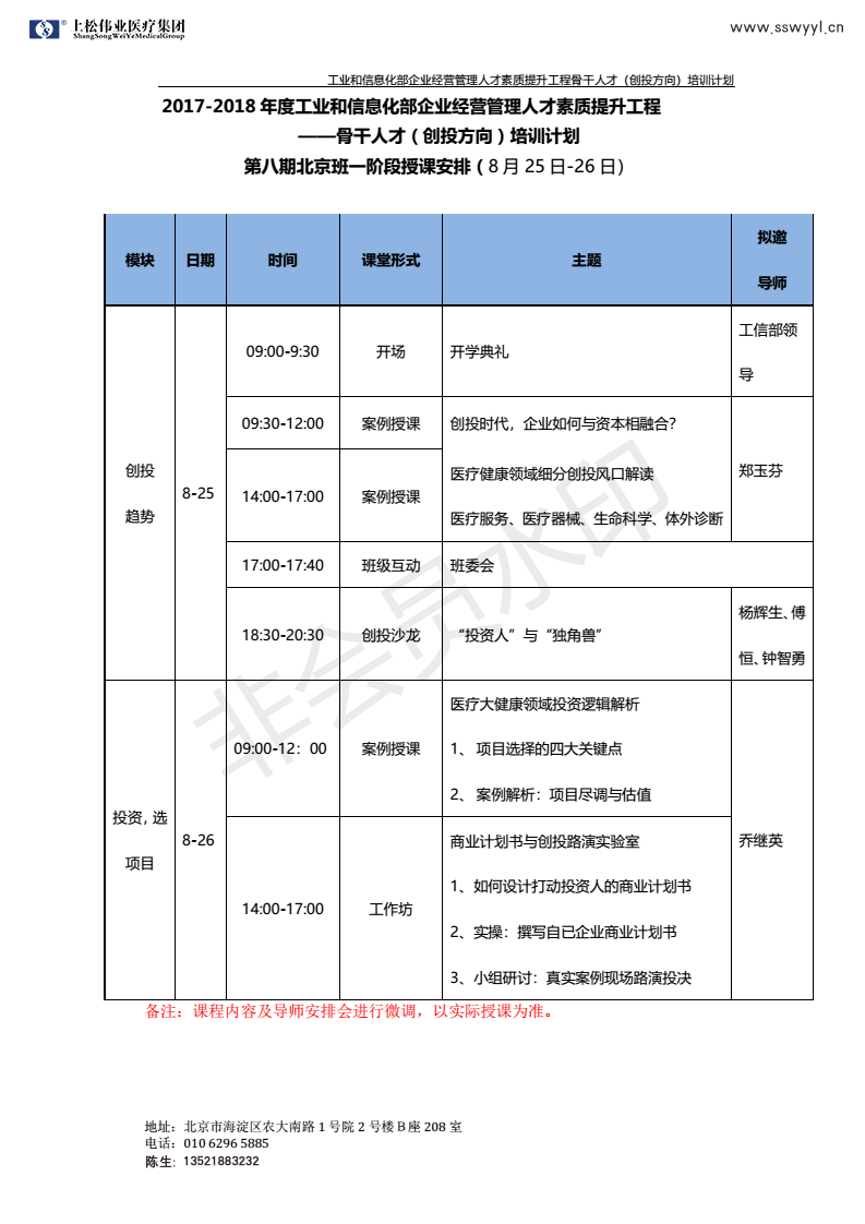 工信部骨干人才第八期班(醫(yī)療大健康方向)課表一階段
